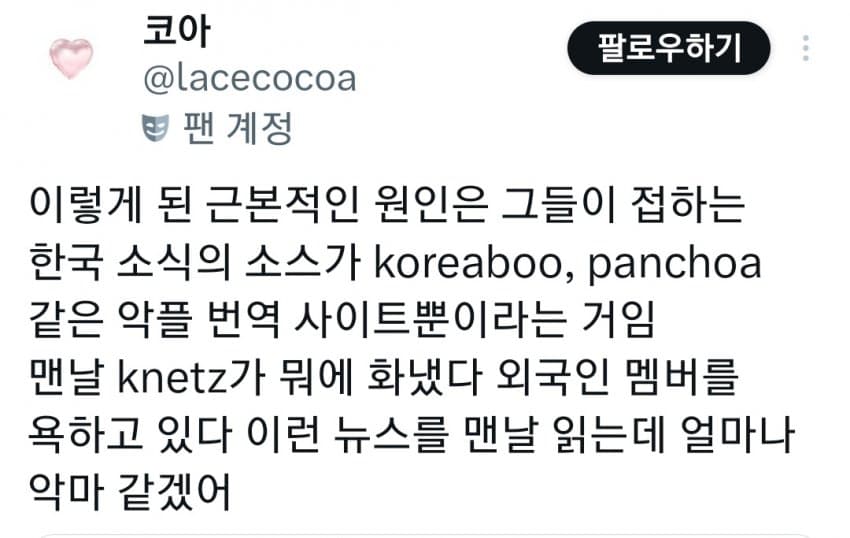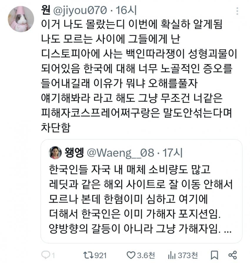 4. 맨날 한국디씨, 트위터악플이나 자국혐오번역함