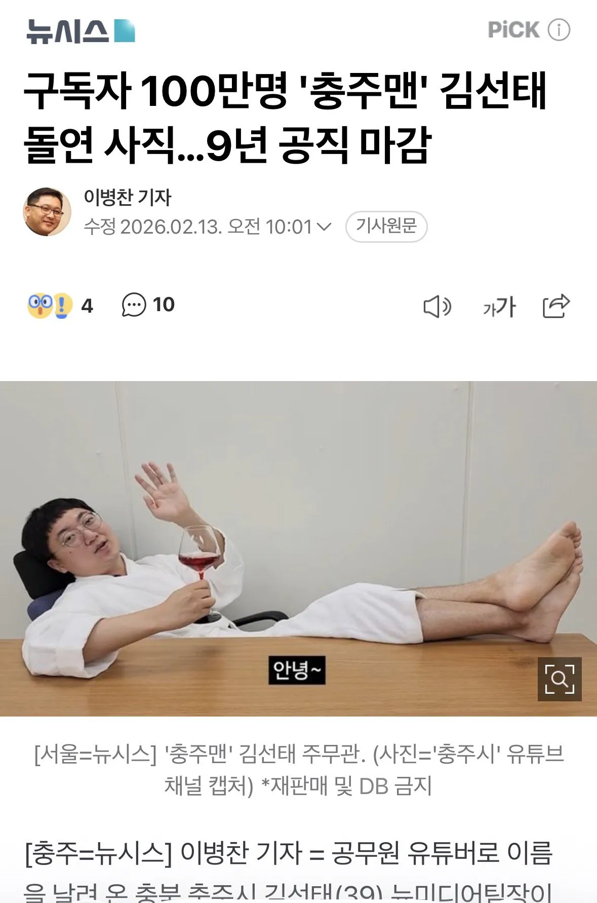 최고의 선택임 퇴직햇다는 이유로 침착맨,빠니보틀,라디오스타,나혼자산다,아는형님 등등에서 또 불러줄거고 그러면 최소 2~3년은 광고,예능,행사 뛸텐데 그 2~3년이면 공무원으로 평생 벌돈+연금까지 싹다 벌어먹음ㅋㅋ 사직 안하고 버티는게 바보같은 선택이지