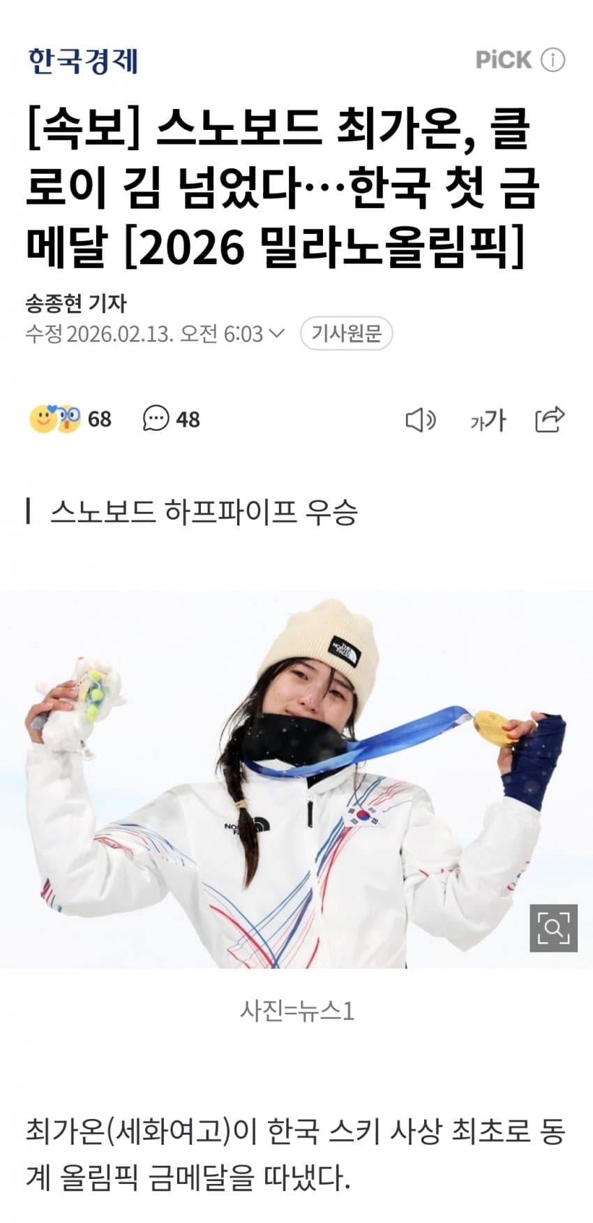 우리나라 스노보드 선수 한명 나가던 시절이 십여년전인데 올림픽 금메달도 따고 많이 컸다
