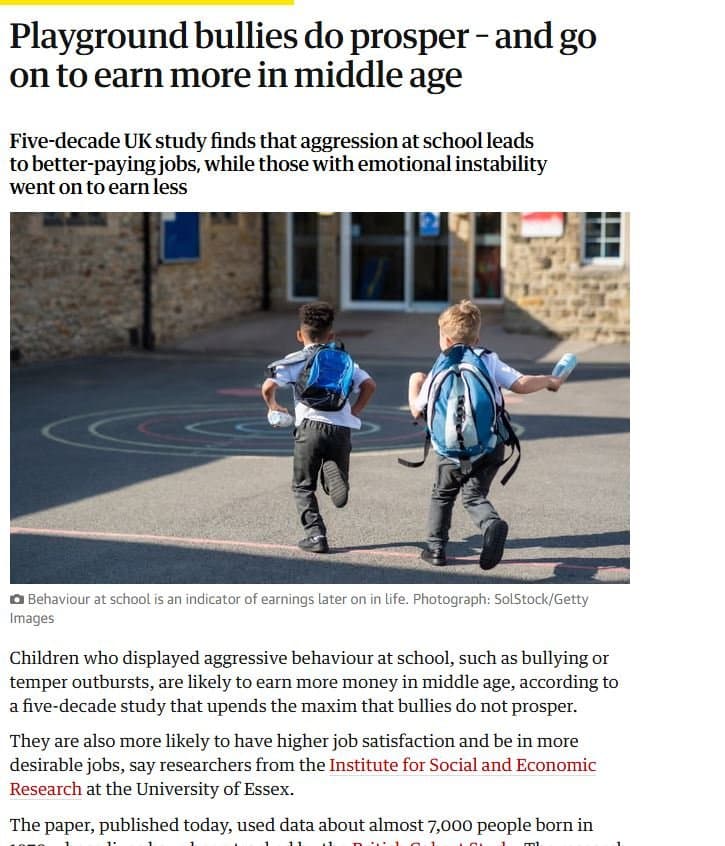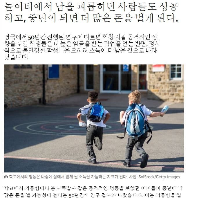 학교에서 놀던 놈들이 더 돈 잘벌고 사람 관계에 대해 더 잘 녹아들었음