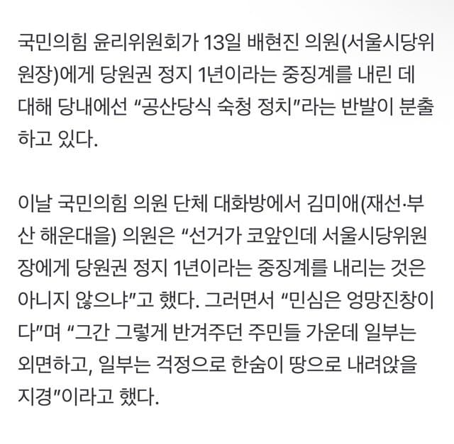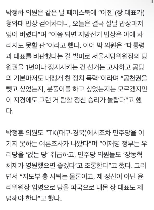 장동혁은 이재명보다 더한 독재네 ㅋㅋㅋㅋㅋㅋㅋㅋㅋ 재명이는 그래도 공천을 안준거지 출당을 시키진 않았는데