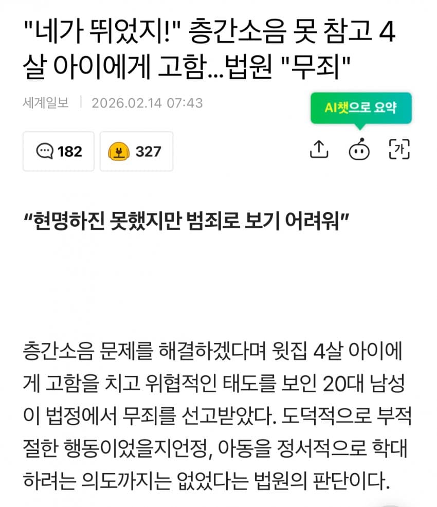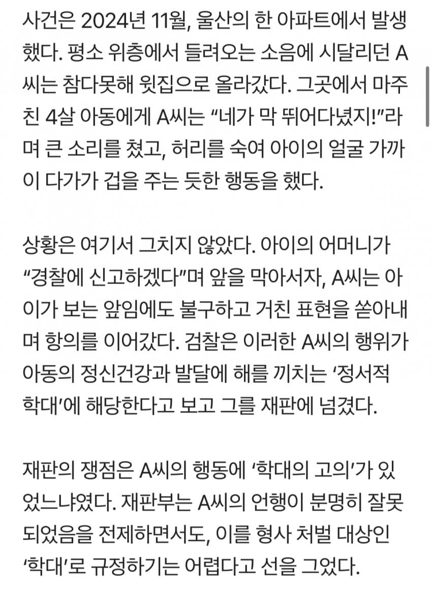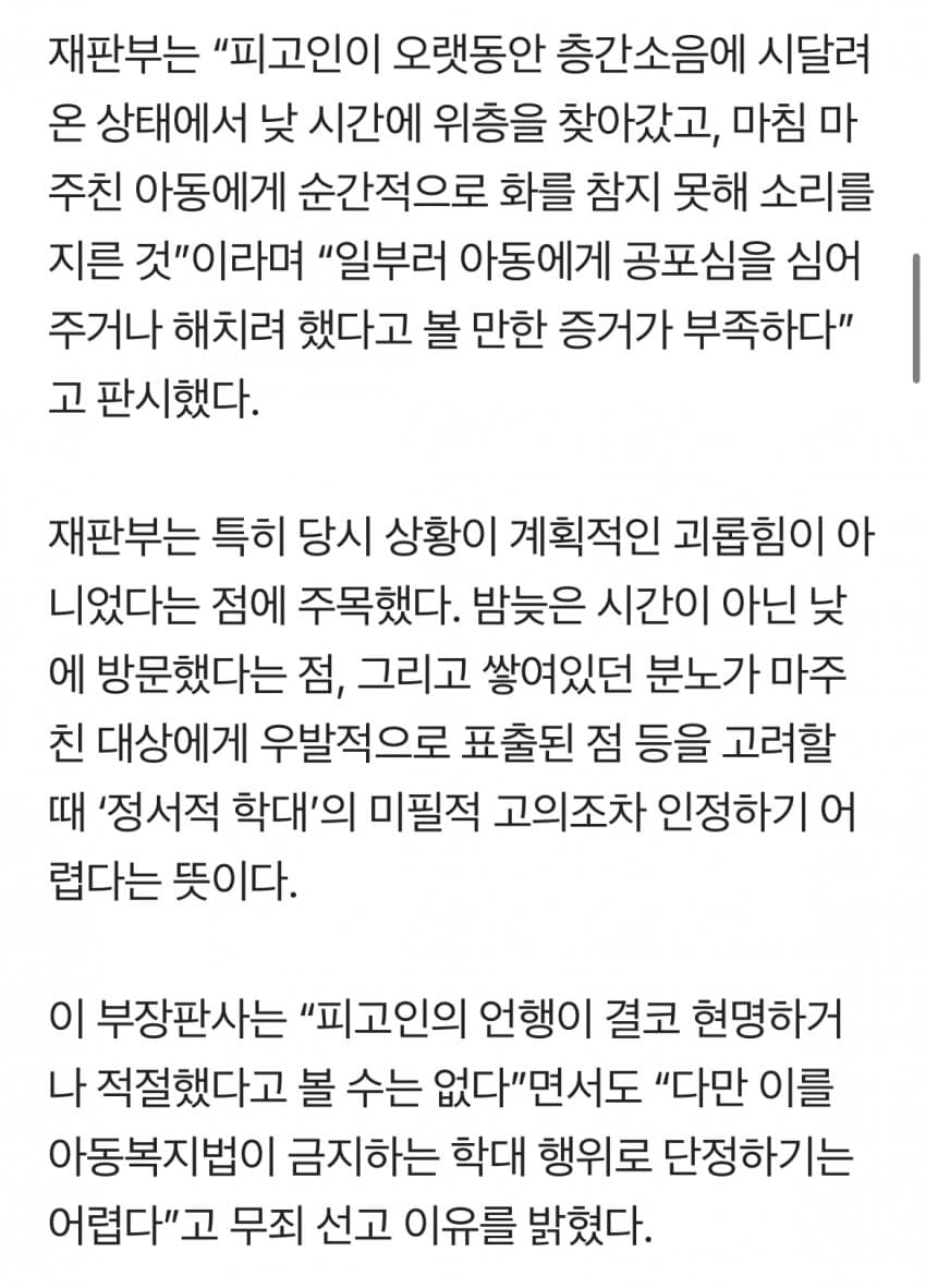 층간소음 못 참고 4살 아이에게 고함…법원 "무죄"