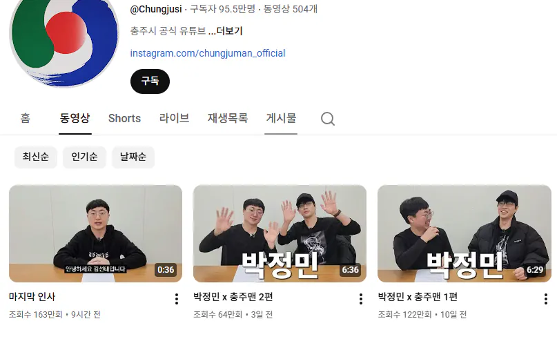 얘가 구독자 많은건 알겠는데 그래서 결과적으로 충주라는 도시에어떤 기여를 했는데? 인구수 늘기라도 했음?