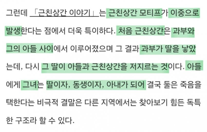 근친하면 결국 그 말로가 좋지 않을 거라는 교훈을 남김유교기반 조선사회가 얼마나 근친에 가차없었는지 알수있는 부분