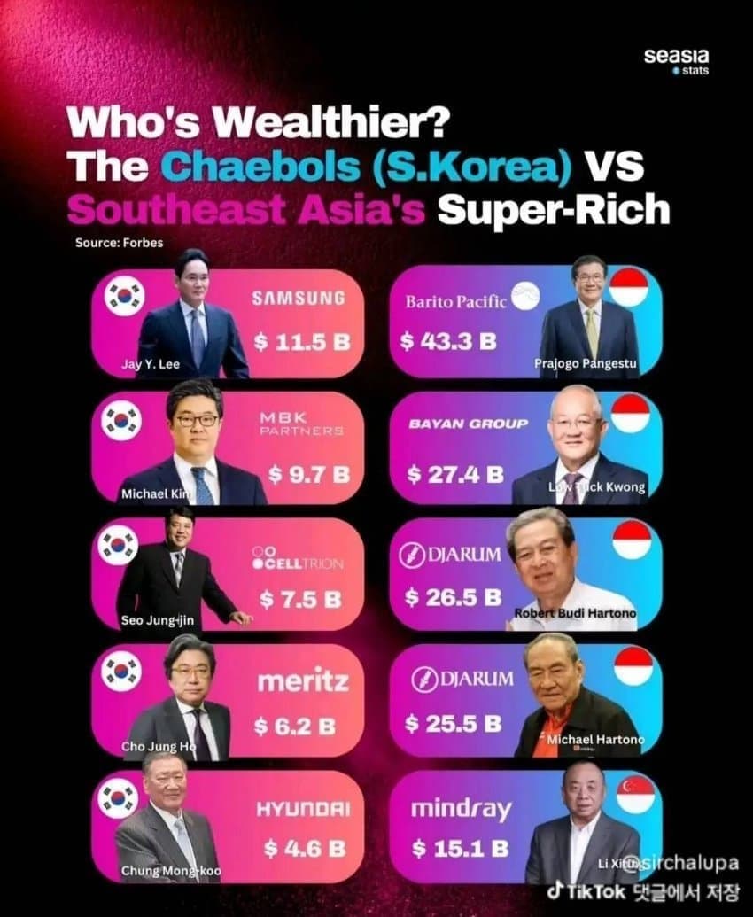 미국이나 호주처럼 근본이 이민국가, 식민지인 케이스도 아닌데 인구 과반을 차지하는 지네들 민족에서 손에 꼽히는 거부가 거의 안나옴