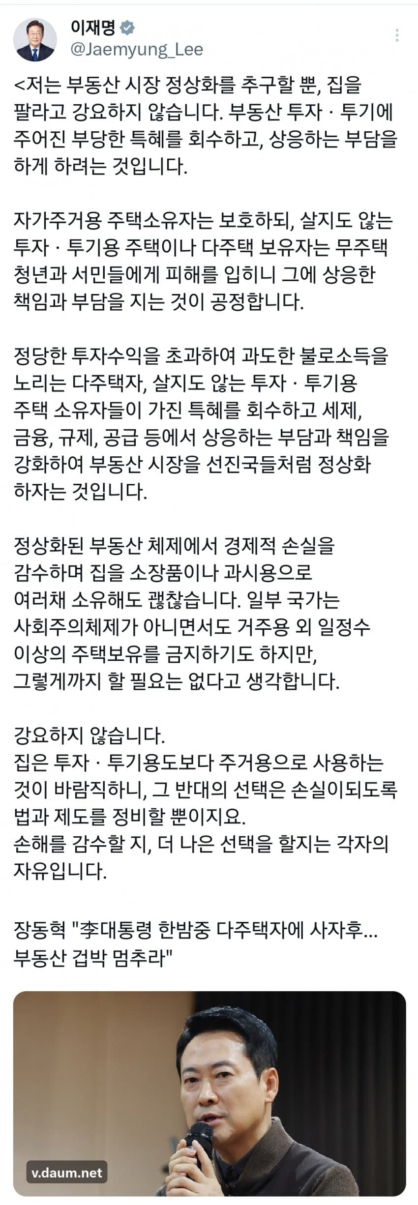 집값 내릴 자신 있으면 지금은 집 팔고 대통령 임기 끝나고 다시 사면 되지 않노 ㅋㅋㅋㅋ 살지도 않는데 떨어질 집을 왜 들고 있노 ㅋㅋㅋㅋ