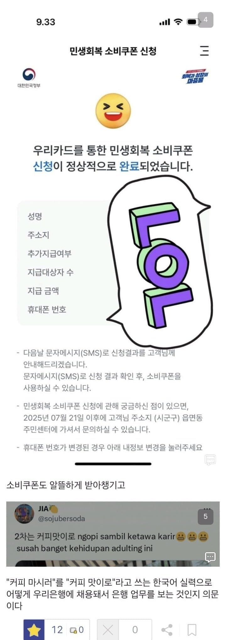 진짜 어질어질한 나라다. 외노자 소비쿠폰까지 낭낭하게 챙겨주네
