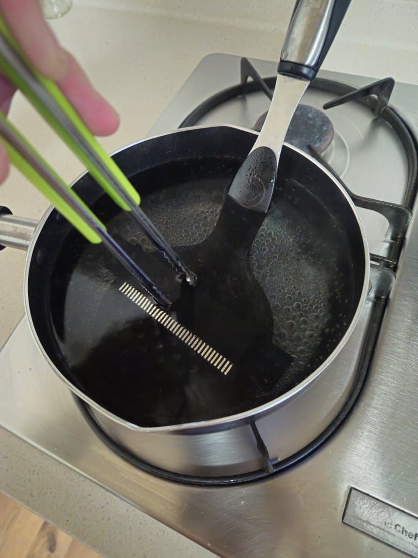 집게로 집어서 잘 저어주면 육수가 잘 우러나온다.
