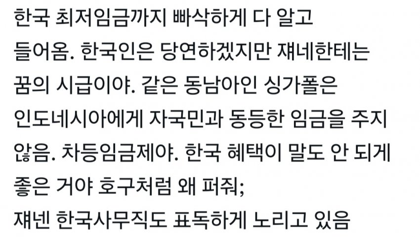 외국인 차등임금제를 실시해야 맞지 저품질 인간을 언제까지 비싸게 주고 수입할거야