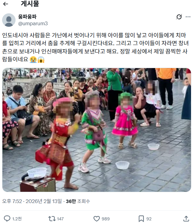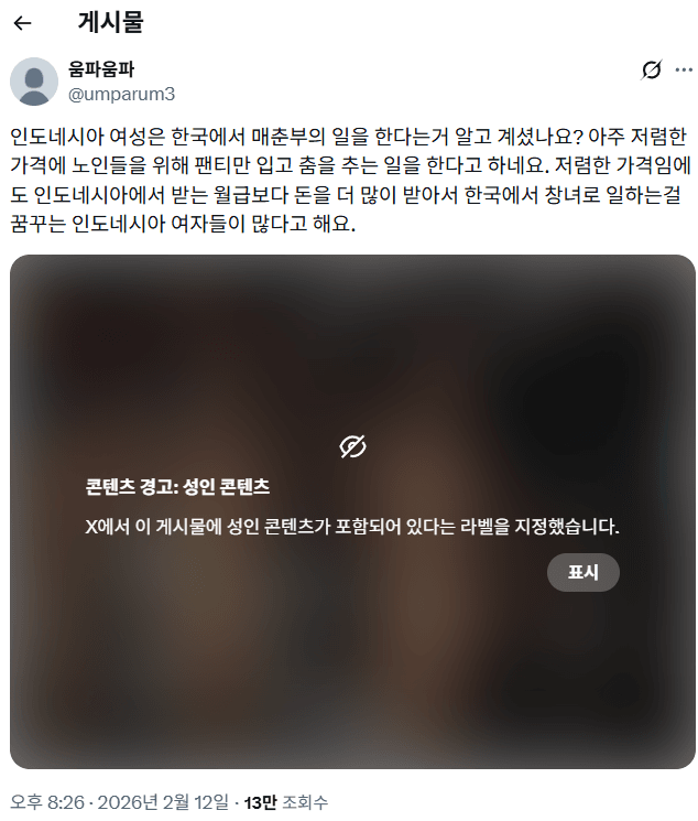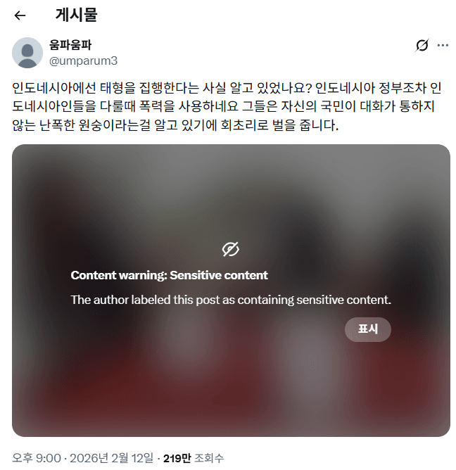 그들은 중국의 공작이란 선동이 통하지 않자, 이제 인도네시아의 농간이라 선동하고 있다. 한국 남성의 계략이라 말하고 있다. 정말로 역겨운 일이고, 한국에서 늘 경험하던 맛 그대로다.