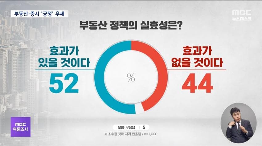 집값 잡힌다 52% = 노무현, 문재인때 속아놓고 3번째면 속은 사람이 바보몇년전에 분당 아파트 판다고 해놓고 매물 거둬들인 대통령만 봐도 집값이 앞으로 어떨지는 옆집 멍멍이도 알겠다