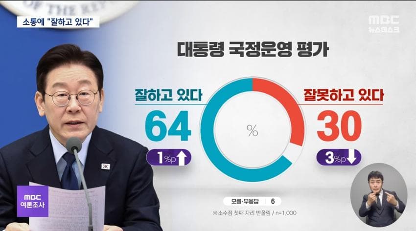 李대통령 국정지지율 64%, 집값 잡힌다 52%