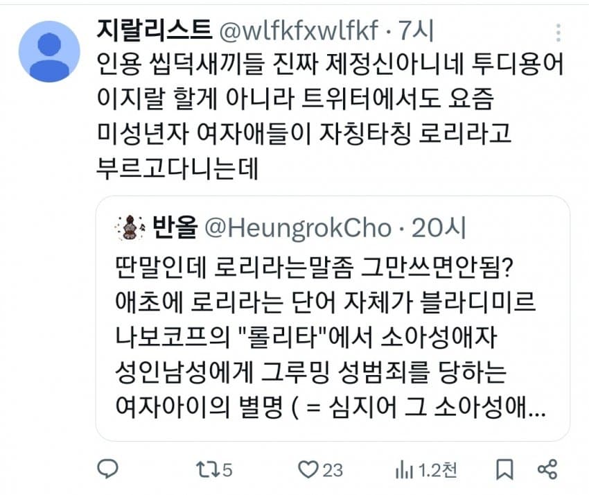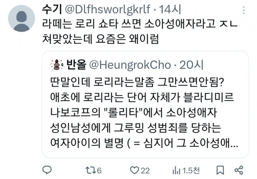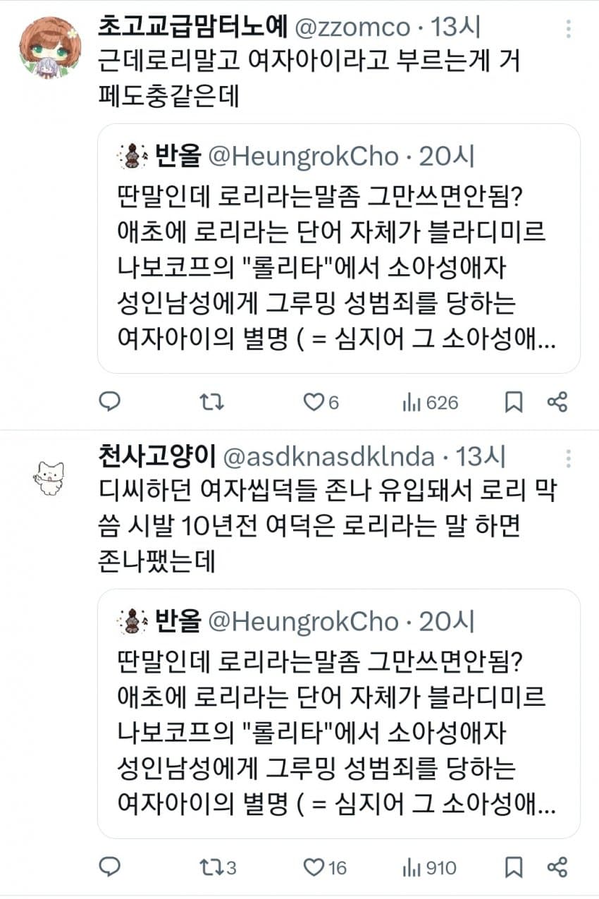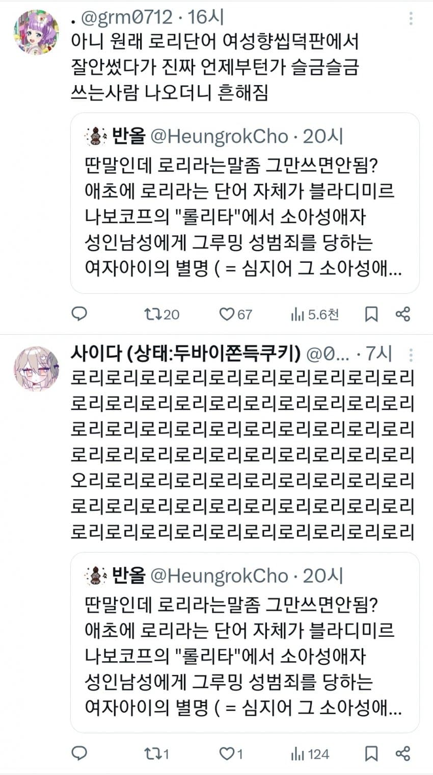 로리단어 더럽긴함 ㅋㅋㅋㅋㅋ 이런거 쓰는애들치고 현실 알파남 없고 소아성애 이상성욕자들이 대부분