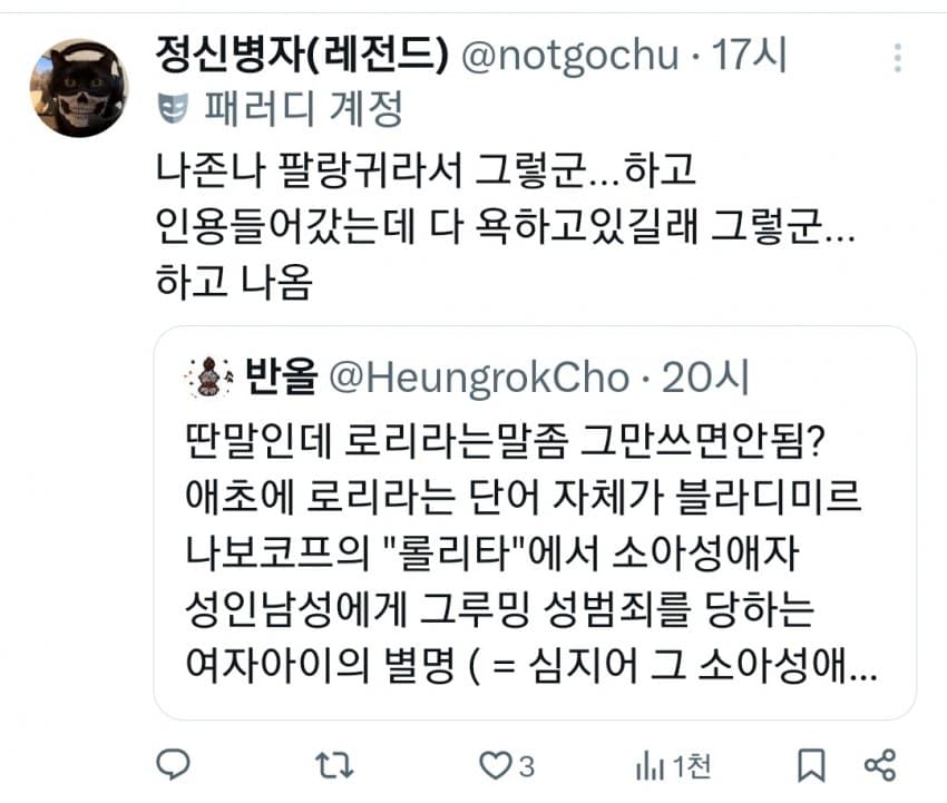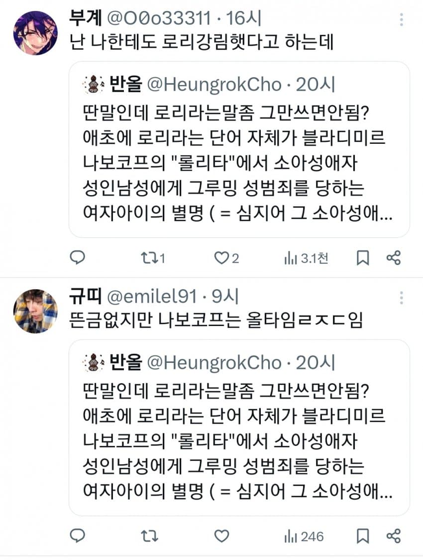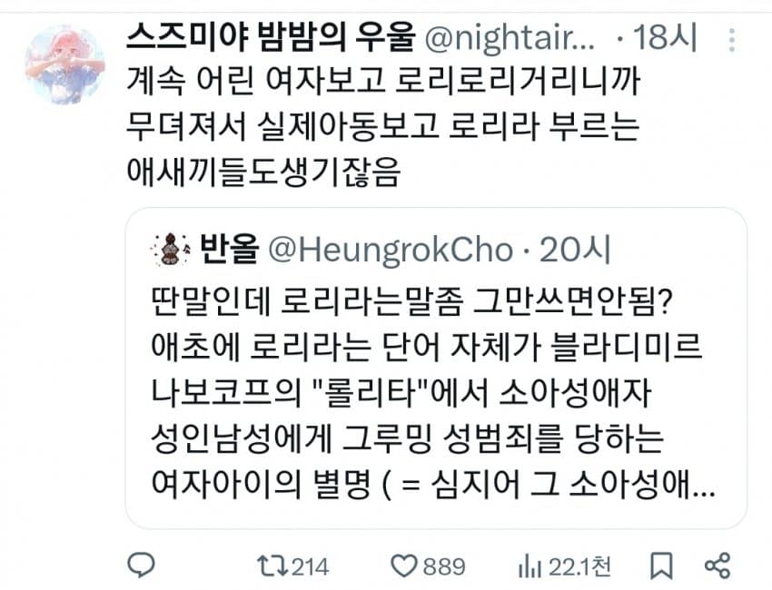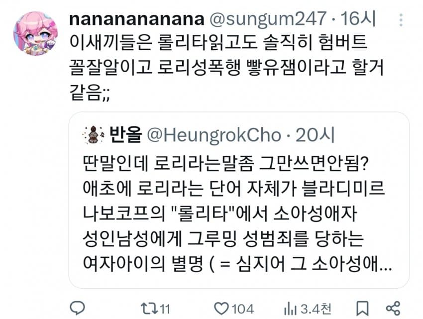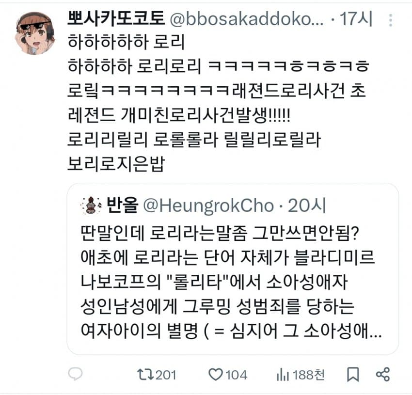 근데 로리가 그렇게 싫으면 얼른 조상님들 묘비 파헤치고 부관참시 해야지 죽일놈들인데