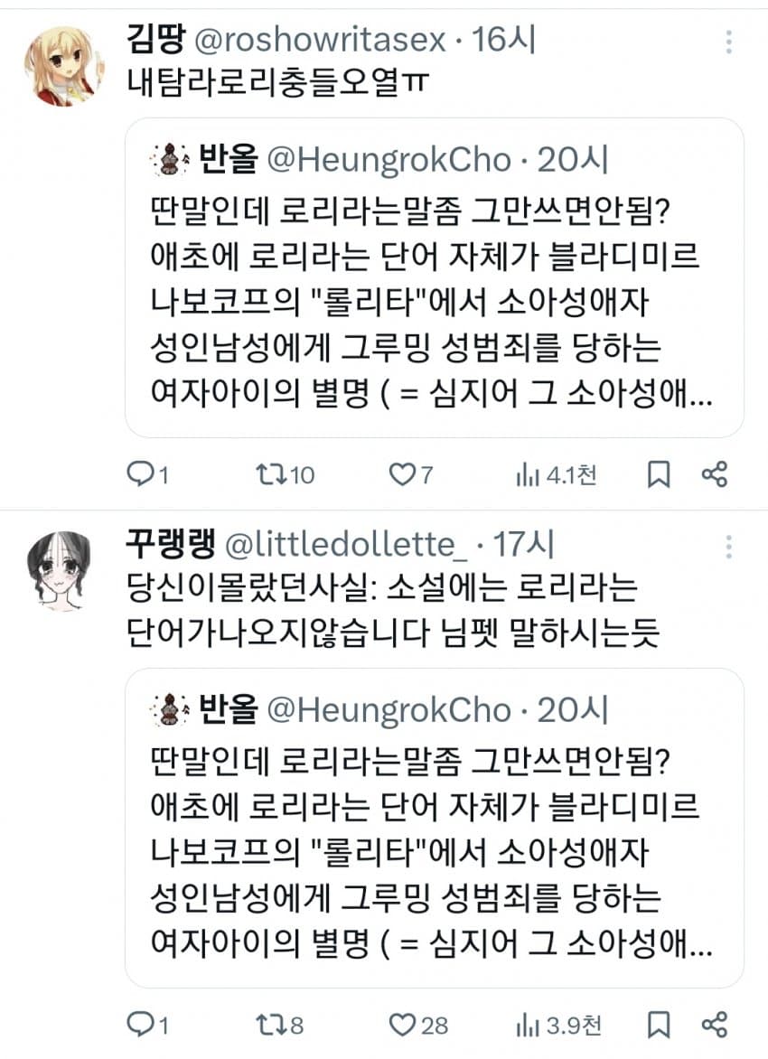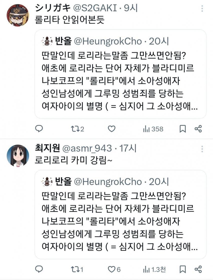 로리 보고 발작하는 애들은 로리가 아니기 때문에 발작하는 거다