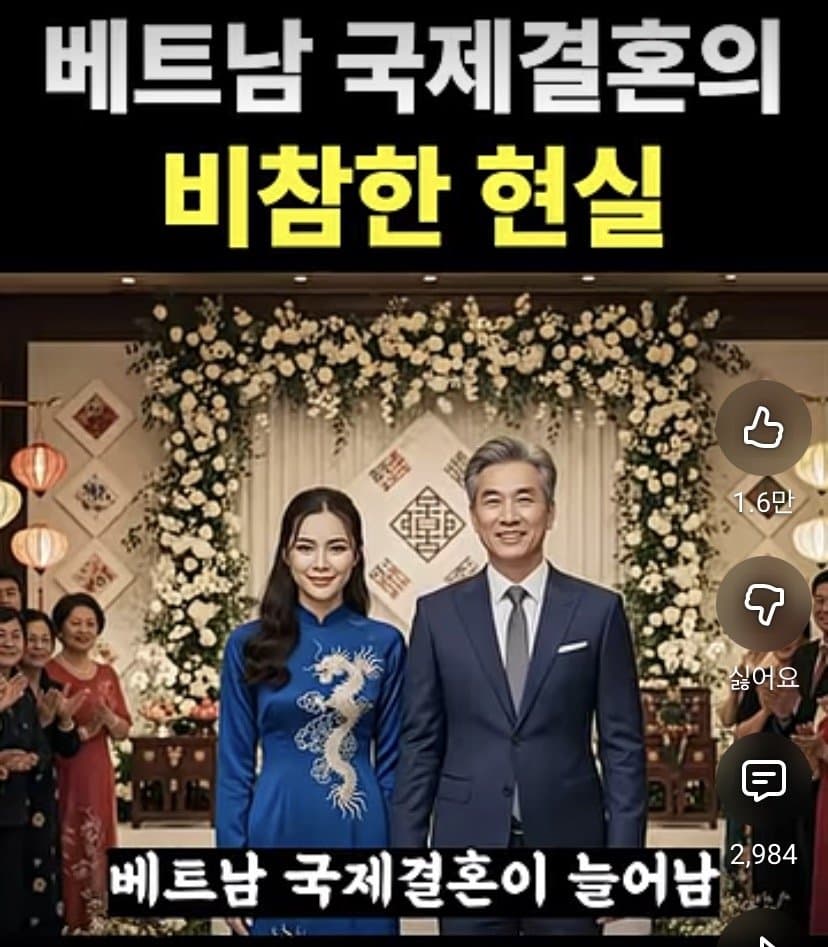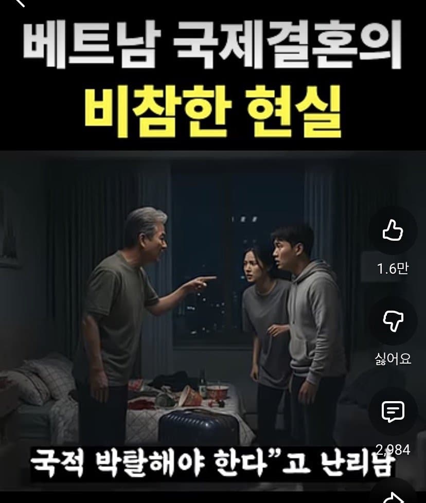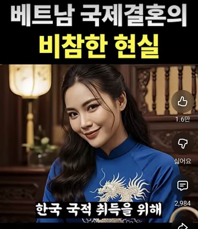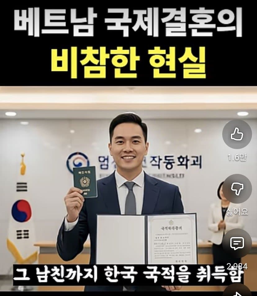 저 제도가 뭔지 앎?저렇게 시민권 취득하지? 그럼 가족 초청으로 베트남 가족들 싹다 초청할 수 있음.그러면 졸지에 지 부모부터 형제까지 싹다 한국인 되는거.그렇게 조선족들이 연변에 지 가족 친척들 싹다 데려왔듯, 베트남 커뮤니티가 형성되는거임