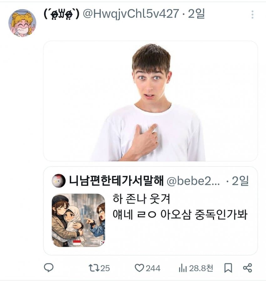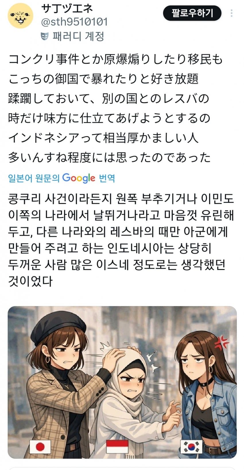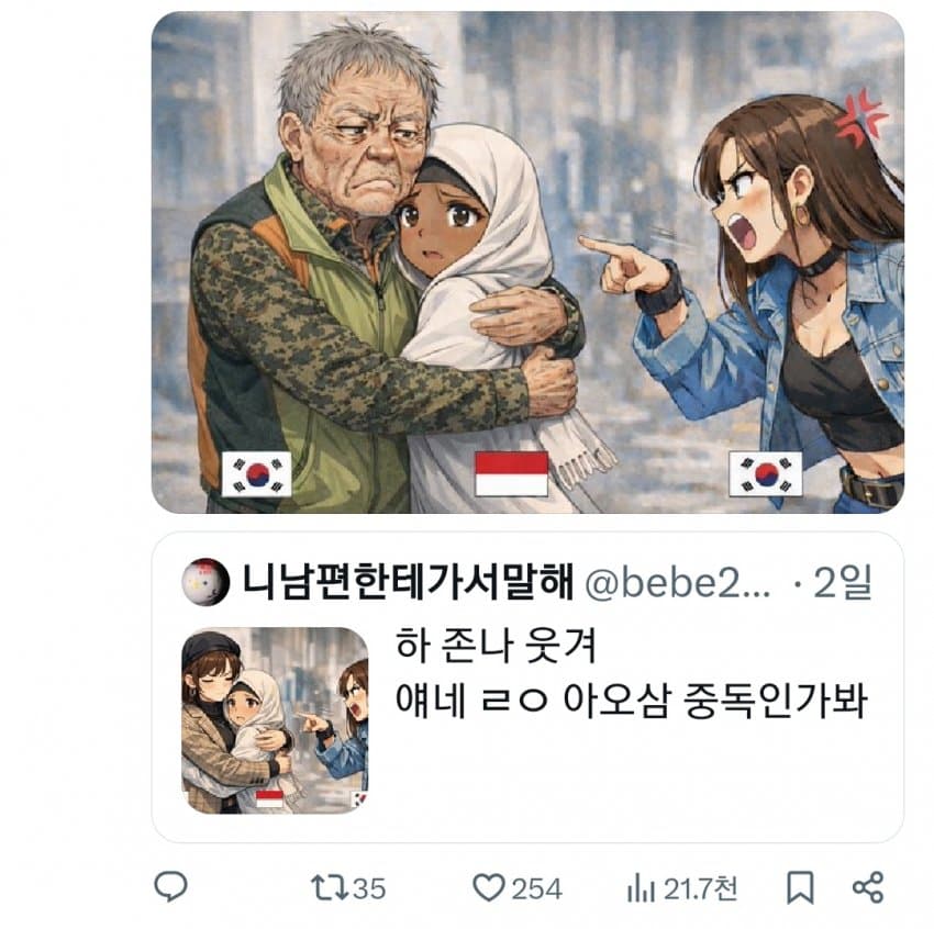 인도네시아 국뽕 유튜버 보니까 인도네시아를 건드렸다고 세계가 한국을 미워하고 한국 경제가 폭락하고 무슨 개나발을 부르던데.. 참 웃음만 나오더라.,