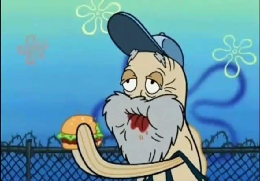 집게사장 과거에서 햄버거 먹다가 쓰러진 할아버지(시즌3에선 디자인 다르게 나옴)