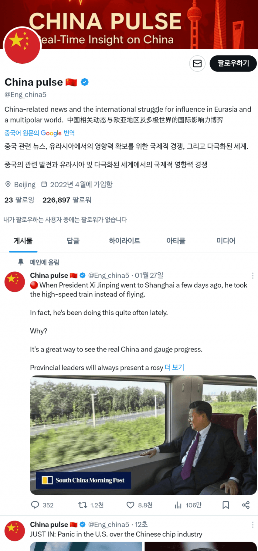 그건 바로 22만 팔로워의 중국 홍보 공식 트위터 계정