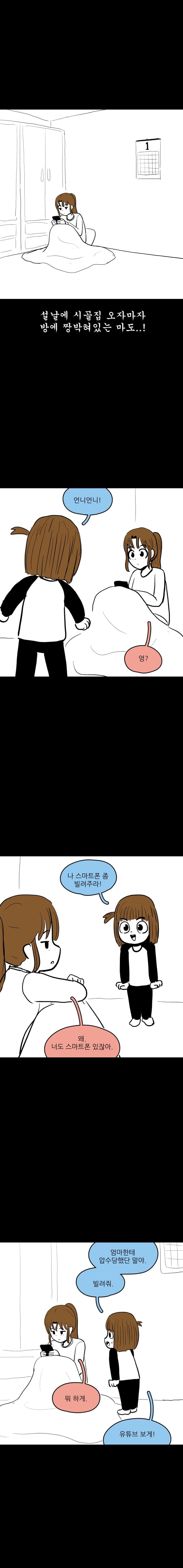 설날에 친척동생 만나는 만화