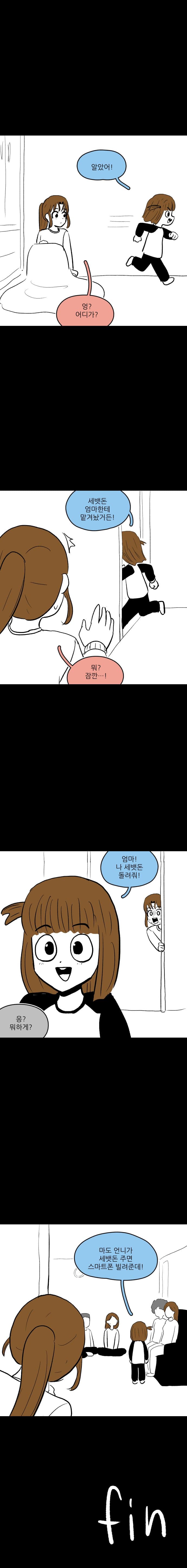 저지능 만화퀄,, 꼬마애라도 엄마한테 왜 스맛폰 압수당했는지 알텐데, 고걸 바루 엄마한테 얘기한다구?