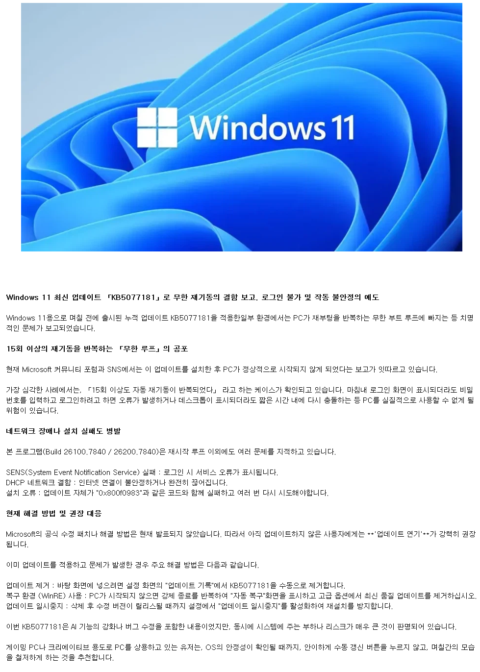 그냥 윈도우도 클라우드로 빨리 전환해라. 업데이트, 오류 지겹다게임만 할사람은 스팀OS설치하고