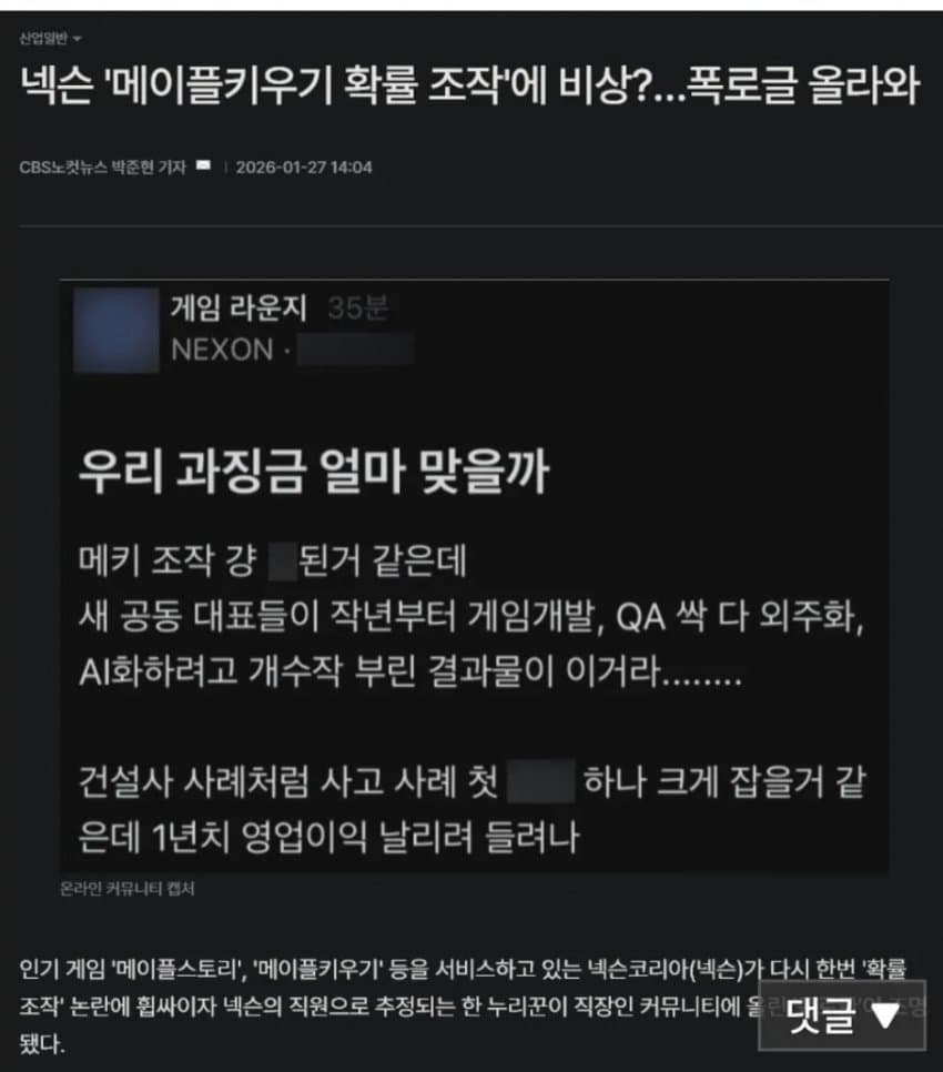 얼마전 확률조작 터지고 1600억 환불때린 메숭이키우기 랑 동일 매커니즘임