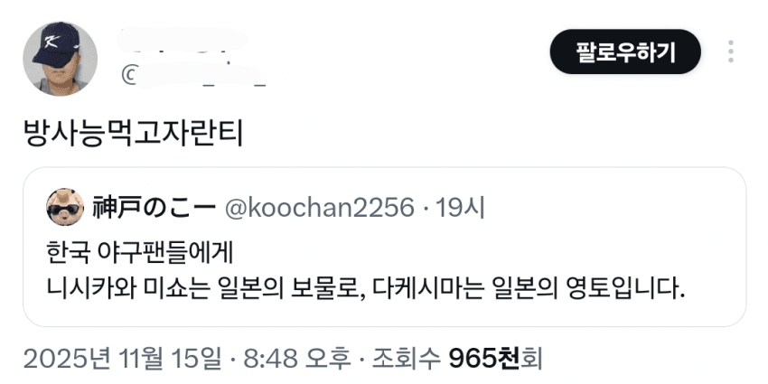 콘마요 공격에 일장기 여드름 원폭 공격 입갤
