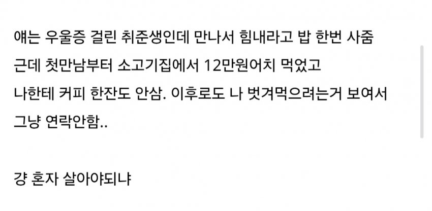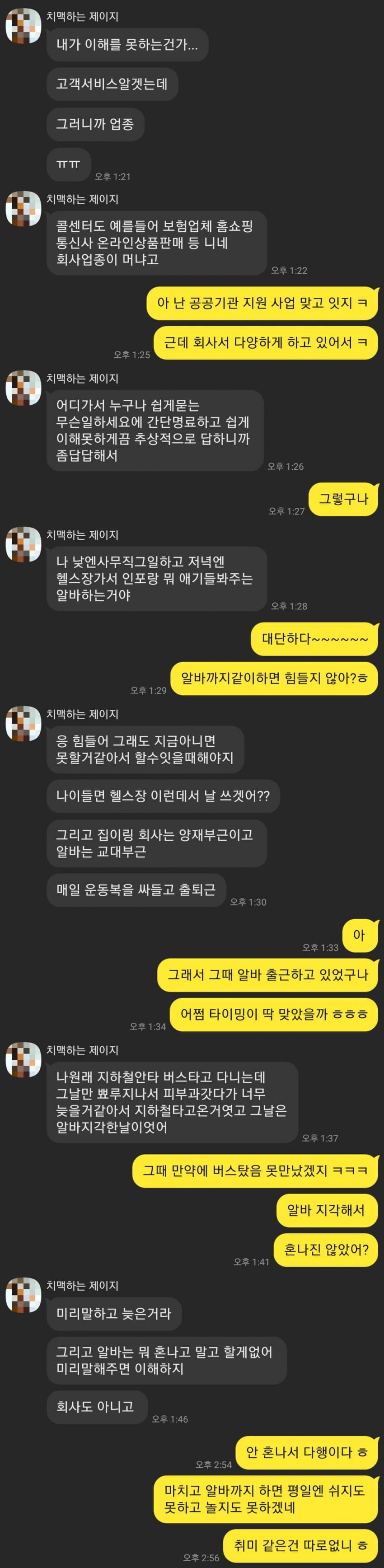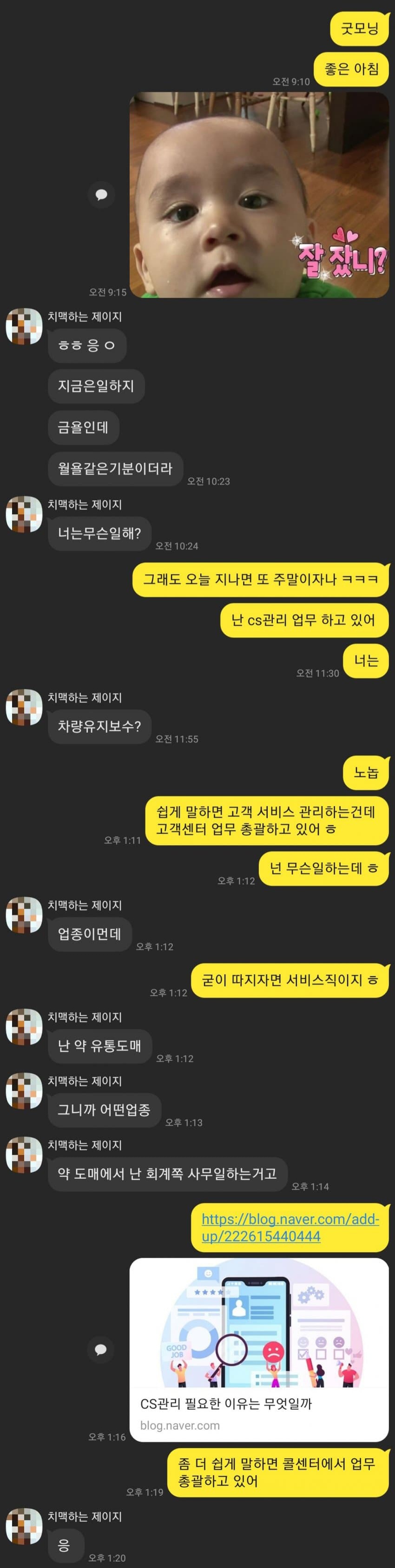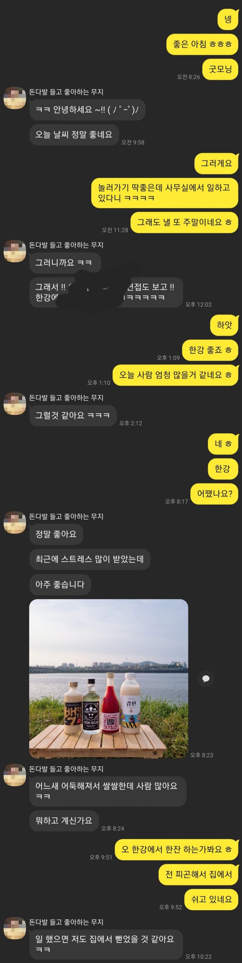 아니 애초에 처음본사람에게 번따를 하고 대화가 잘 이어갈 거란 생각을 하는게 이상한거아니냐? 번따한 남자 조차 걍 연애생각 섹스 생각으로 한 것뿐인거고 여자입장에서는 아무 감정 없는거고 그래서 당연히 조건 쪽으로 더 집중하게 되는거고 진짜 사랑을 원한다면 자기삶에 집중하다가 만나게 되는 인연에 집중하는게 전부임. 저 카톡 대화 내용 전부 정상이 한 명도 없구만 서로 삶의 연결고리가 하나도 없으니까 공유가 안돼서 대화가 이어지질 않지.