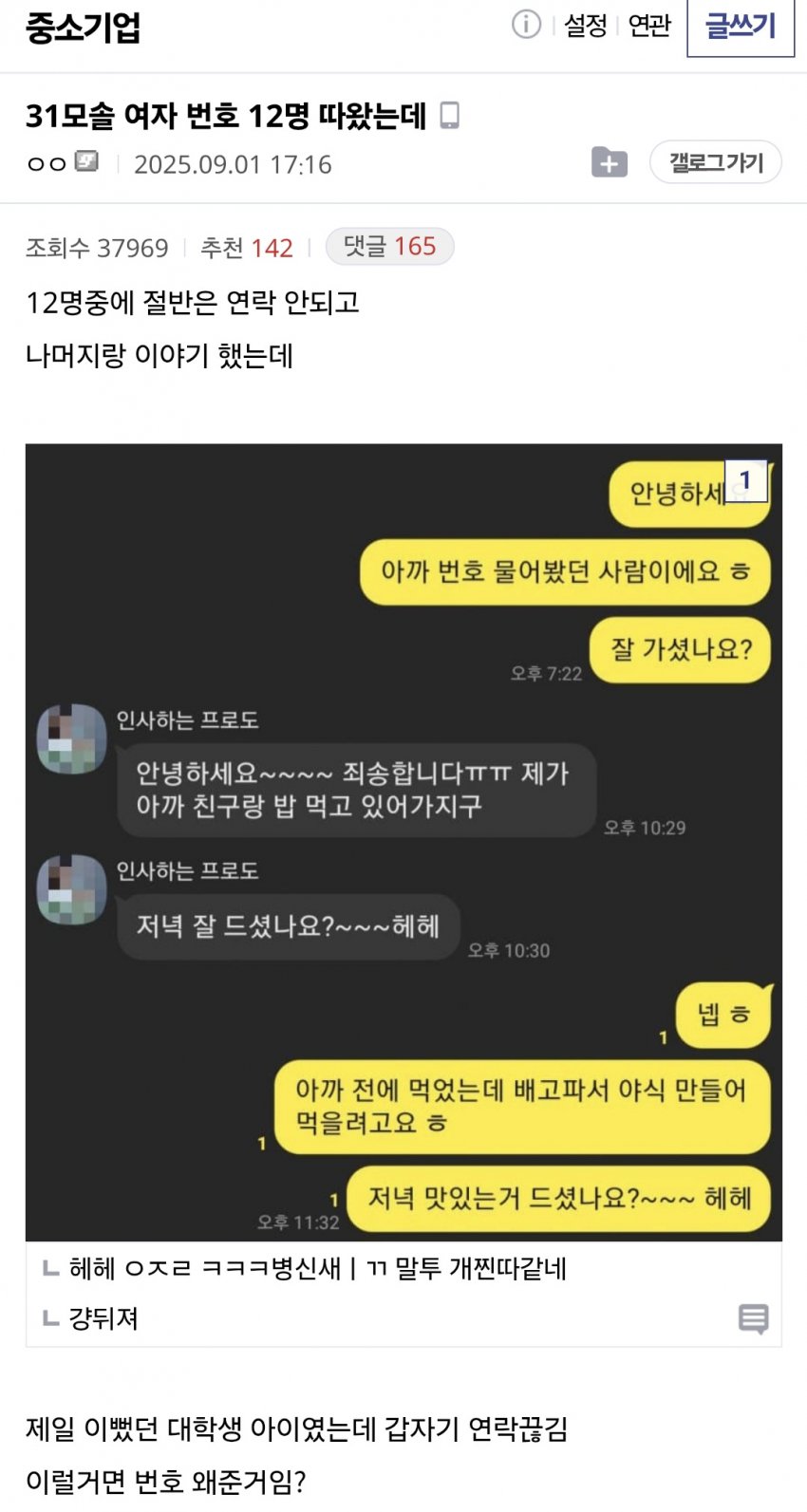 그래도 모르는 여자들이 번호 주는 거 보니깐 외모는 ㅍㅌㅊ 아님???직업이랑 말투가 쫌 그래서 연락 끊기는 것 같음
