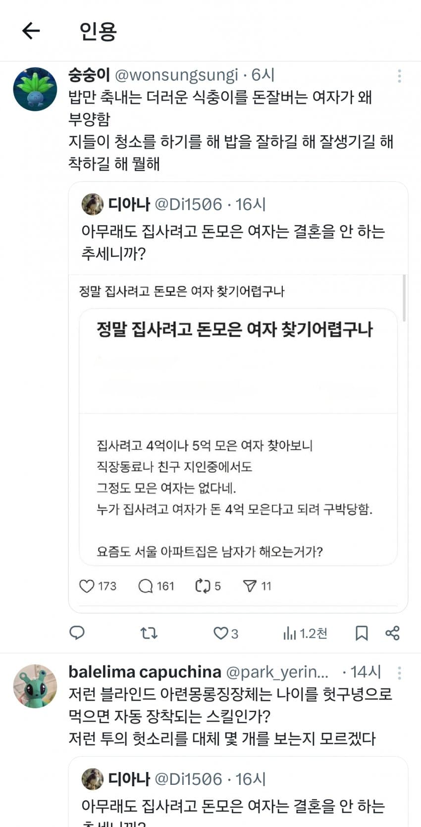 돈 없는 여자만 남자에게 기생하려고 결혼시장에 기웃거림