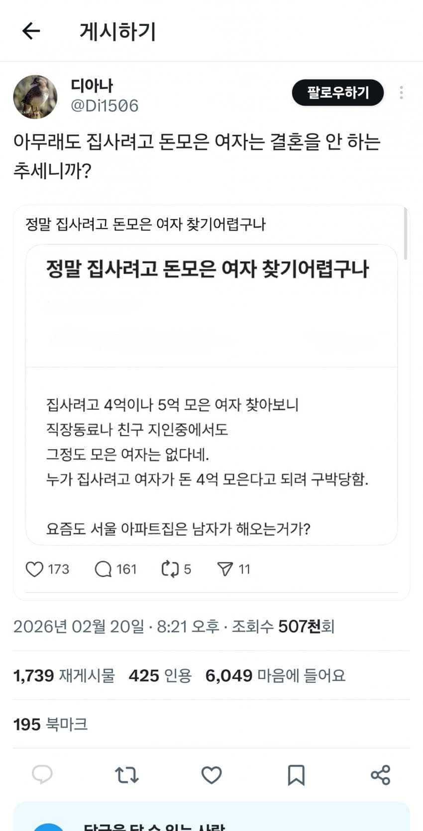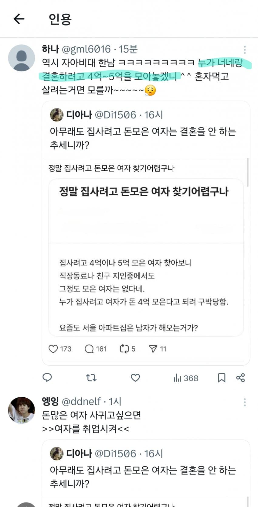 집 사려고 돈 모은 여자는 굳이 결혼을 할 이유가 없고,