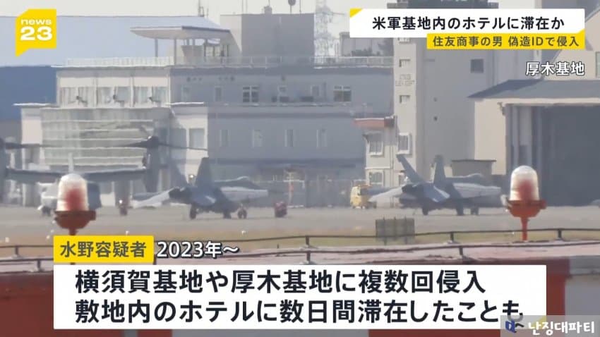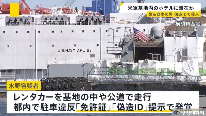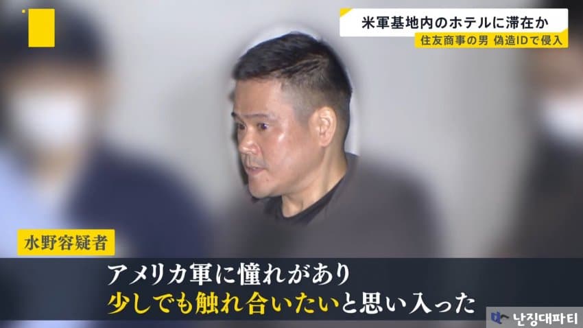 일본인 남성이 신분증을 위조해 미군 기지에 침입해 활동한 혐의로 체포되어 논란이 일고 있음