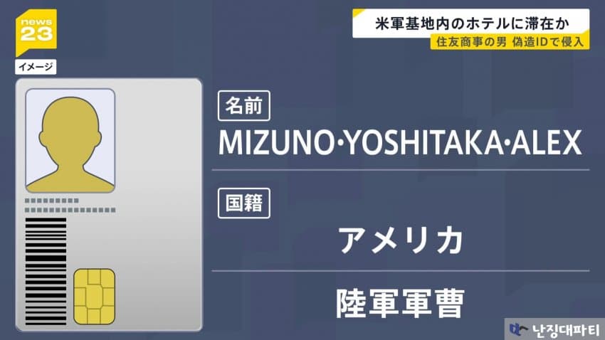 참고로 미즈노가 사용한 가짜 미군 신분증은 이처럼 자신의 얼굴 사진이 부착되어 있었고