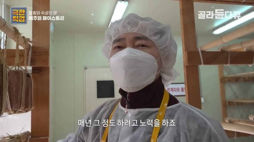 메주 역시 관계자 외 출입이 엄격히 통제되는 실내에서 깨끗하게 제조된 뒤 지푸라기로 매달아 건조됨
