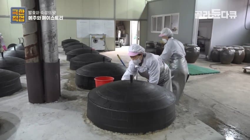 저렇게 몸을 미친듯이 흔들어제끼며 침도 넣고, 땀도 넣고, 머리카락도 넣고, 옷에 묻은 먼지도 넣어서 잘 휘저어주는 게 일본 전통 간장의 깊은 맛을 더해주는듯 함