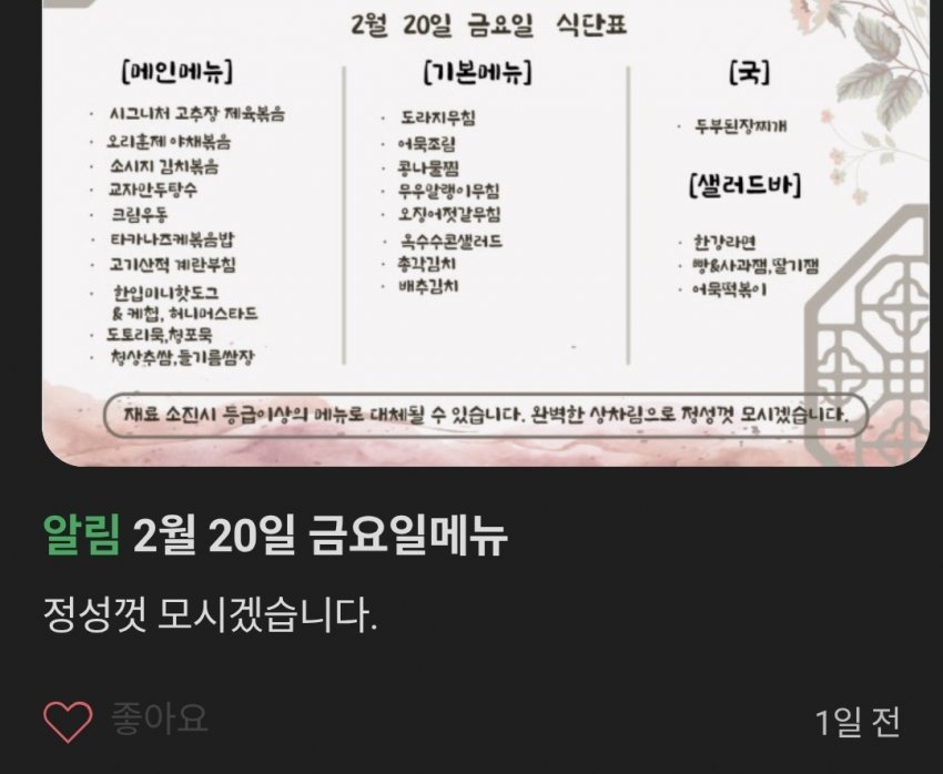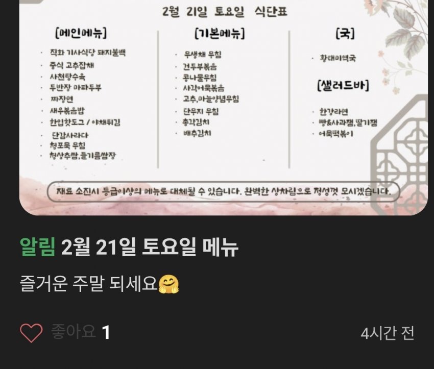 회사 근처 한식뷔페가 진짜 좋음. 매일 반찬 새로 나오고 일단 싸게 많이 먹을수있음.맛도 집밥느낌이라 계속 갈수밖에없음