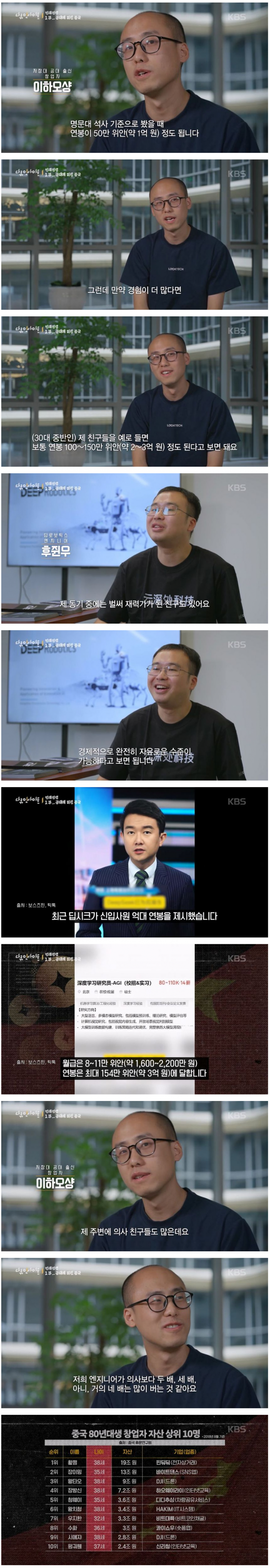 근데 저건 짱개가 유일하게 잘한거긴 하지. 엔지니어 취급 잘해주는거. 엔지니어가 결국 국가 원동력인데 우리나라는 의사를 더 취급하고 공대 가면 공돌이 취급이나 했으니 연봉도 그저 그랬고 지금이야 계속 오른다지만