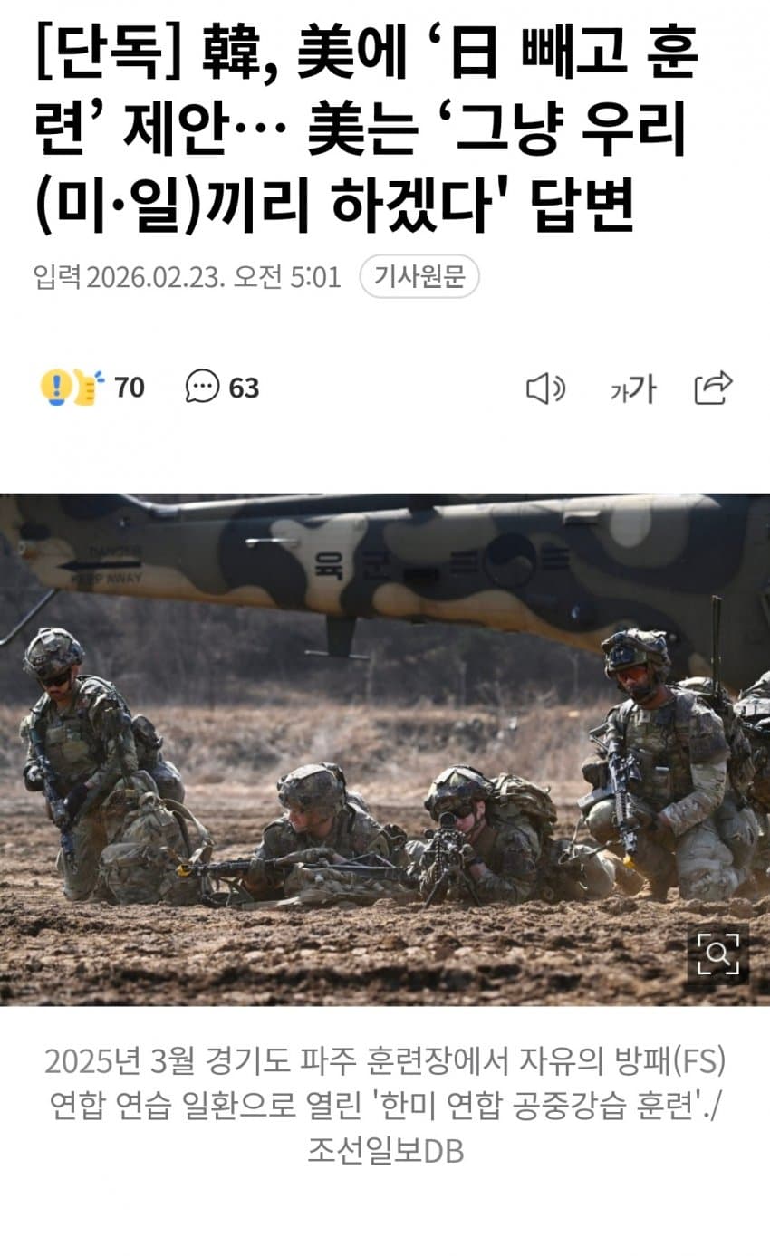 ??? : 한미일훈련 싫어.주인님 : 어 하지마. 일본이랑만 할게