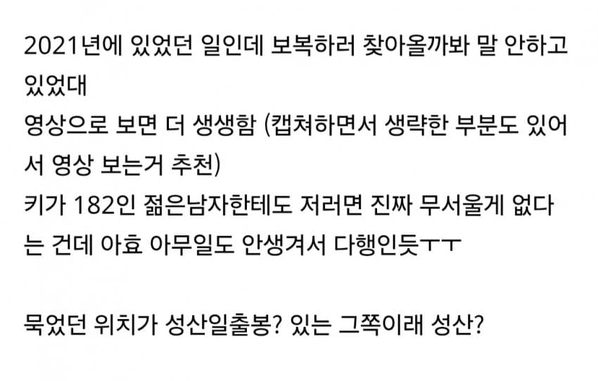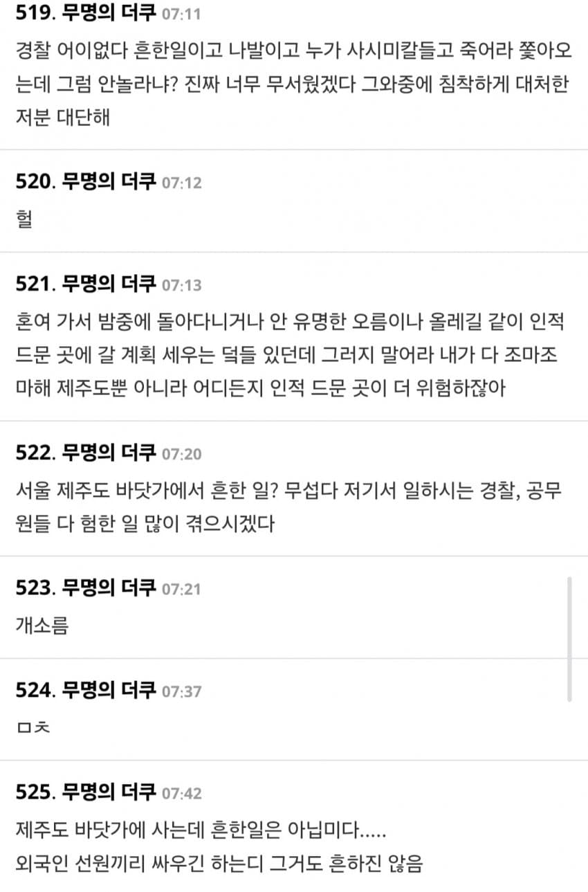부모님 제주도 4년 살았었다가 최근 올라오셨음 치안 은근? 안좋은게 아니고 너무 안좋음 길거리에 다 중국인뿐임 특히 길거리 너무 많고 제주도 외지 일자리에 불체자 엄청 많음 특히 산외곽에 쓰레기들 진짜 엄청나게 버림 밤에 돌아다니면 안됨 중국인이 훨씬 많음 근데 왜이리 쉬쉬하고 있는지 도저히 이해안감 제주도 시장부터 너무 조용함 비상식적으로 너무 조용함 몰아내려는 시도는 커녕 오히려 더 받아들이려고 아득바득 하는중
