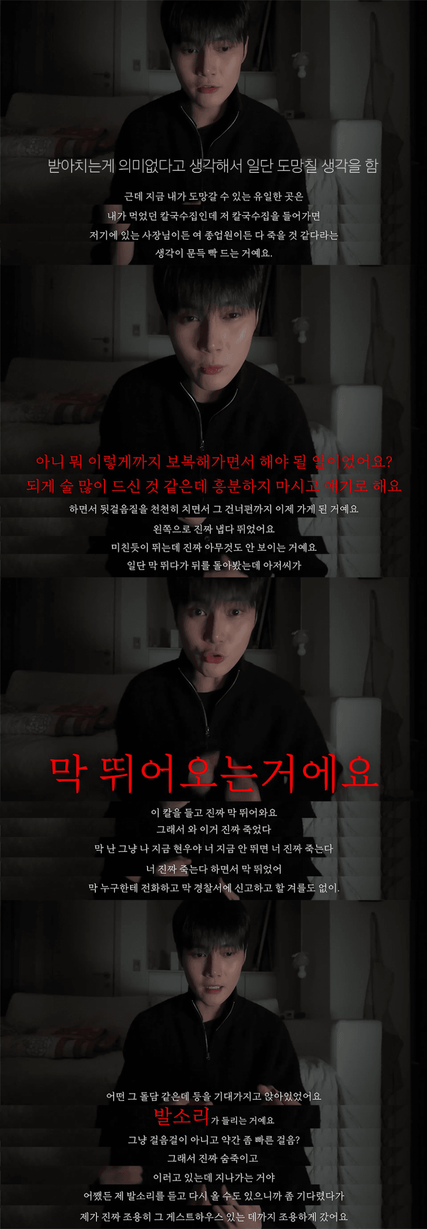 씨씨티비가 폼인가 주변에 다 찍혔을 텐데 저걸 신고를 안했다고? 가게에 지문도, 카드 결제 이력 같은 것도 다 있을 텐데. 상식적으로 저런 상황을 겪고 신고 안 한다는 게 말이 됨?