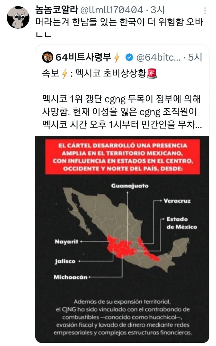 저거야말로 반국가세력이네 비상계엄때려서 일거에 척결해야함멕시코에는 윤석열이 필요하다