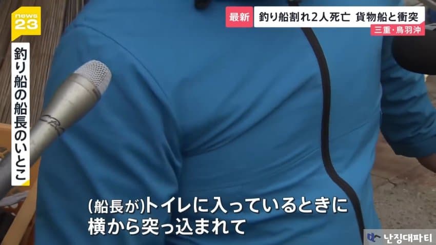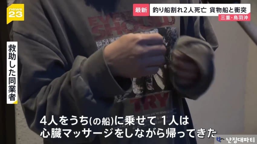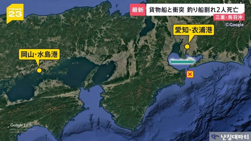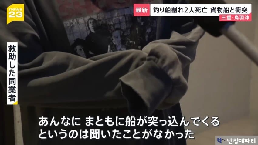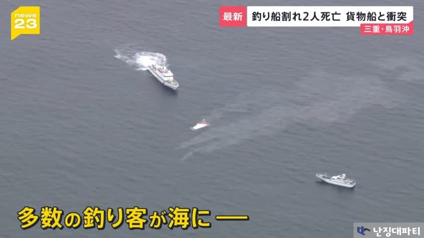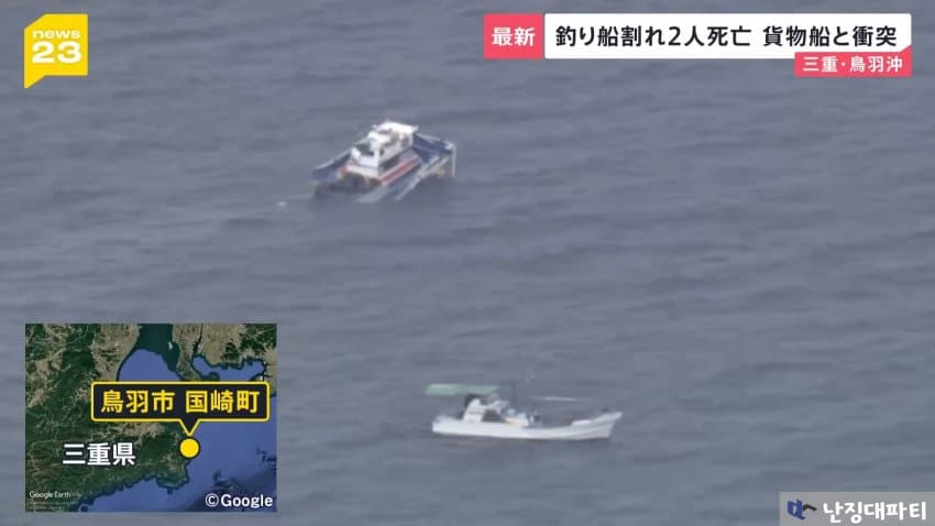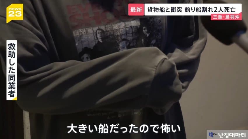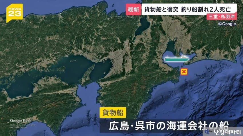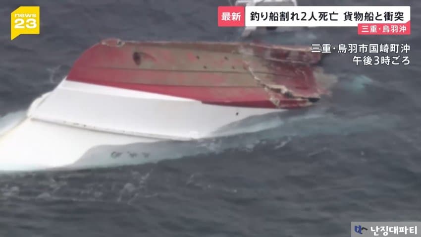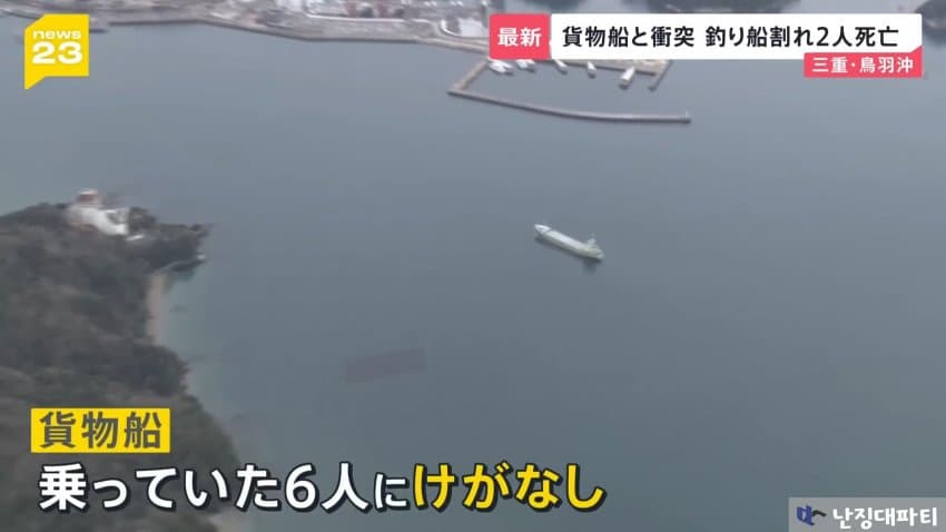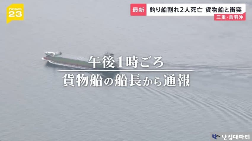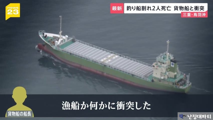 해상보안부에 따르면 이 화물선은 미에현 도바시 앞바다에 닻을 내리고 정박중이던 낚싯배와 충돌했다고 함
