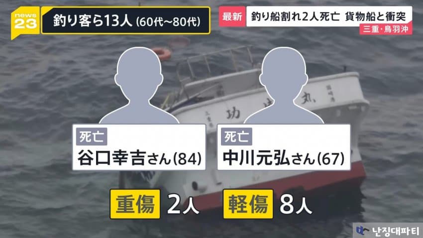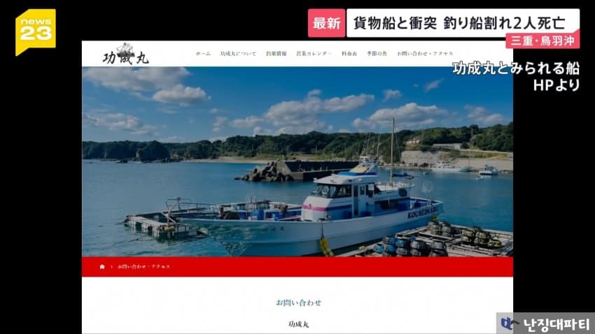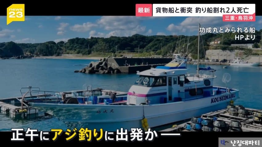 침몰한 낚싯배는 이 지역 업체의 코세이마루로 확인됨