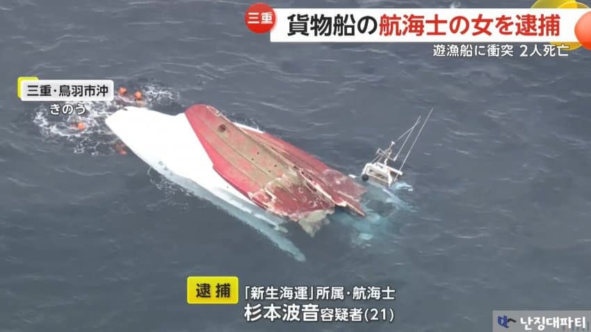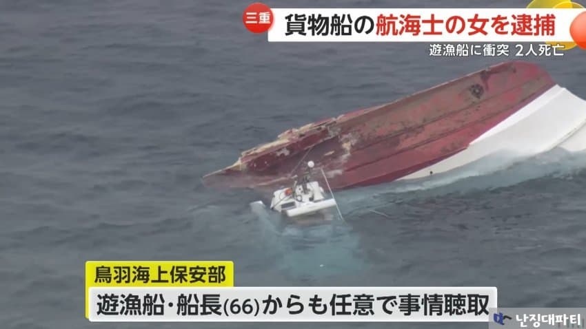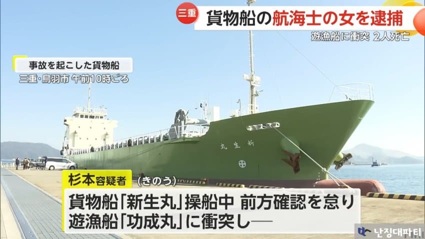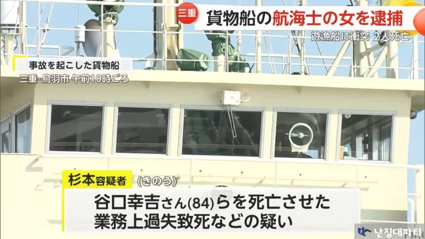 그로부터 며칠 뒤... 사고를 내 사망자까지 발생시킨 문제의 화물선 항해사 스시년이 체포되었다는 소식이 전해짐