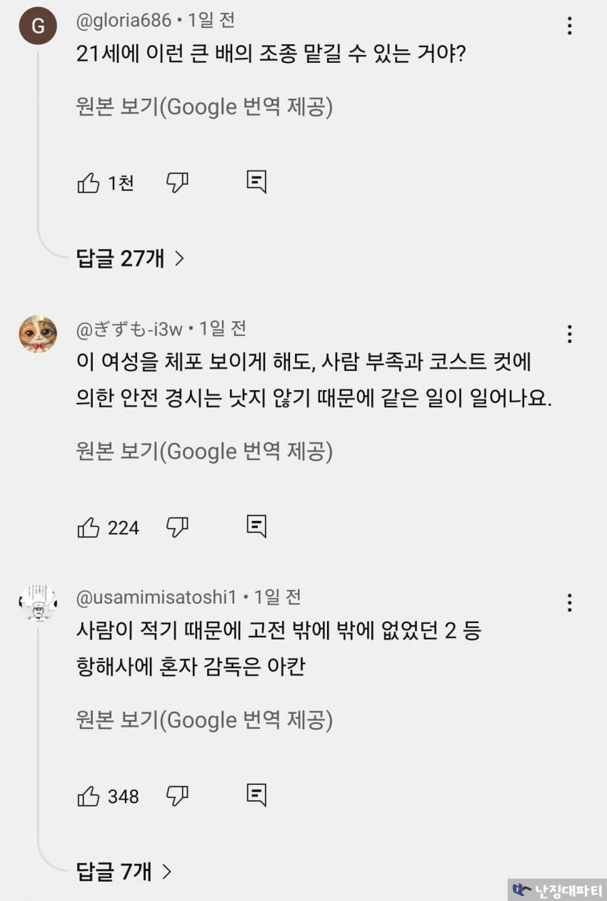 허기야 뭐... 쪽본 이지스함도 어선 들이받아 죽이는데 상선고전 출신 21세 스시녀가 저랬다고 크게 놀랄 일은 아닌건가?