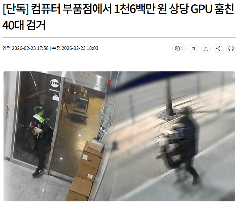 5090 2개, 5080 1개 총 1700만원 수준 훔쳐 달아남