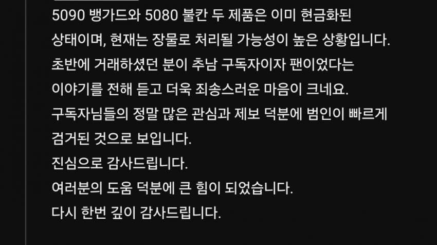 마침 5090과 5080을 동시판매한다는 사람이 있어서 형사들이랑 덮쳤으나, 범인이 아니었음 ㅋㅋ