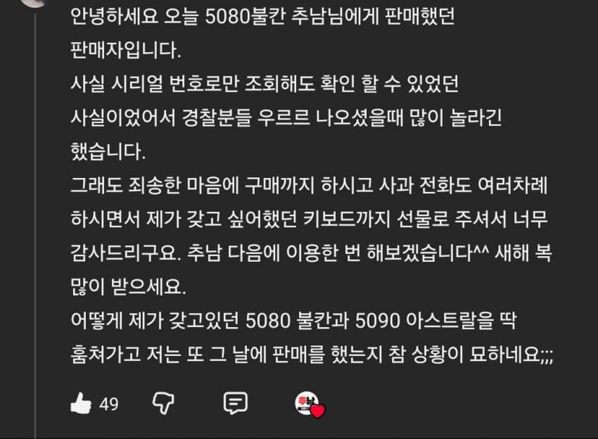 너무 미안해서 5080 불칸 구매 + 키보드 증정 + 거듭 사과