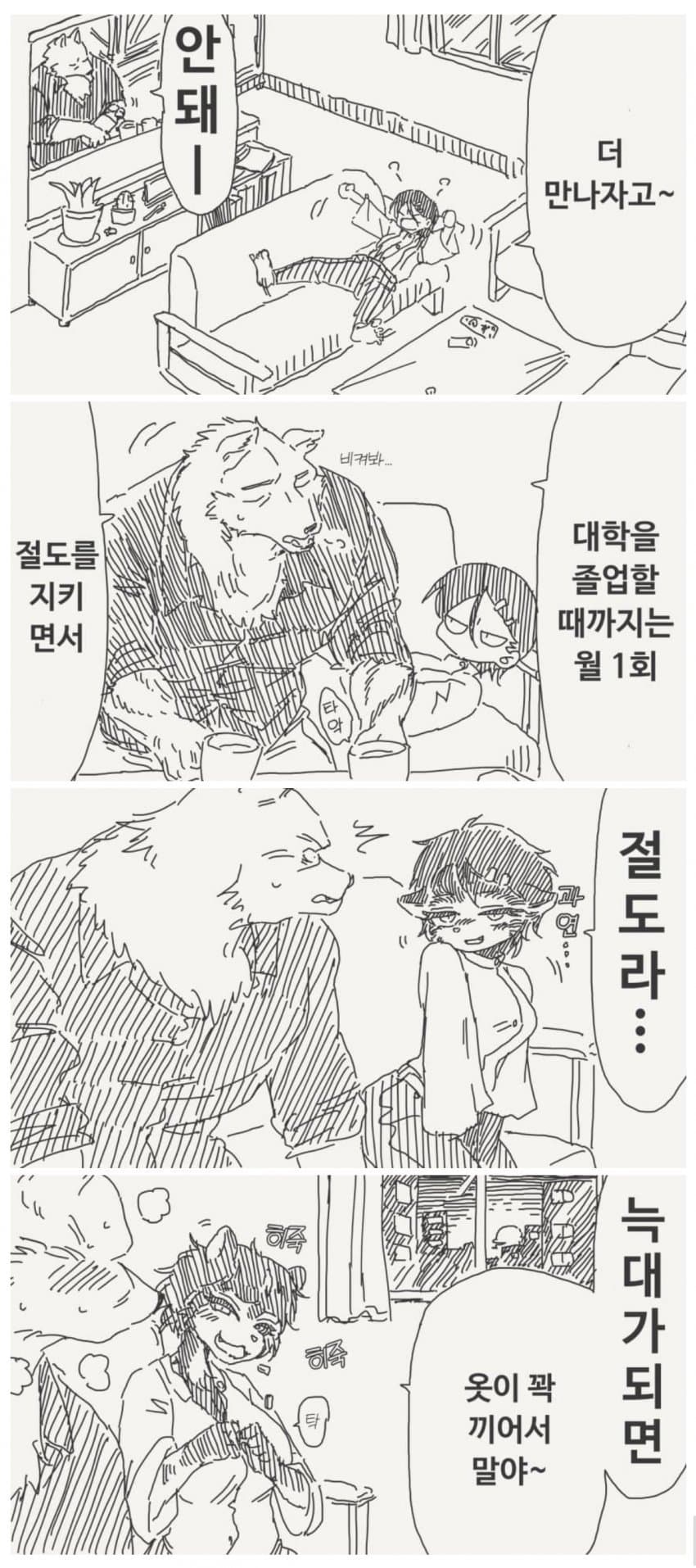근데 털위에 옷입는건 항상 패딩입은 상태 아님? 그러니까 공평하게 인간이 옷 벗으면 누드인것처럼 수인도 섹스할때 털을 다 밀고 시작해야 공평한 섹스 아님?